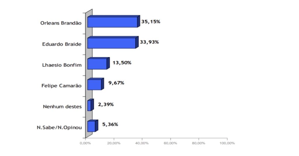 Pesquisa estimulada aponta Eduardo Braide com 33,9%; Lahesio Bonfim aparece com 13,50% e, Felipe Camarão, com 9,67%.