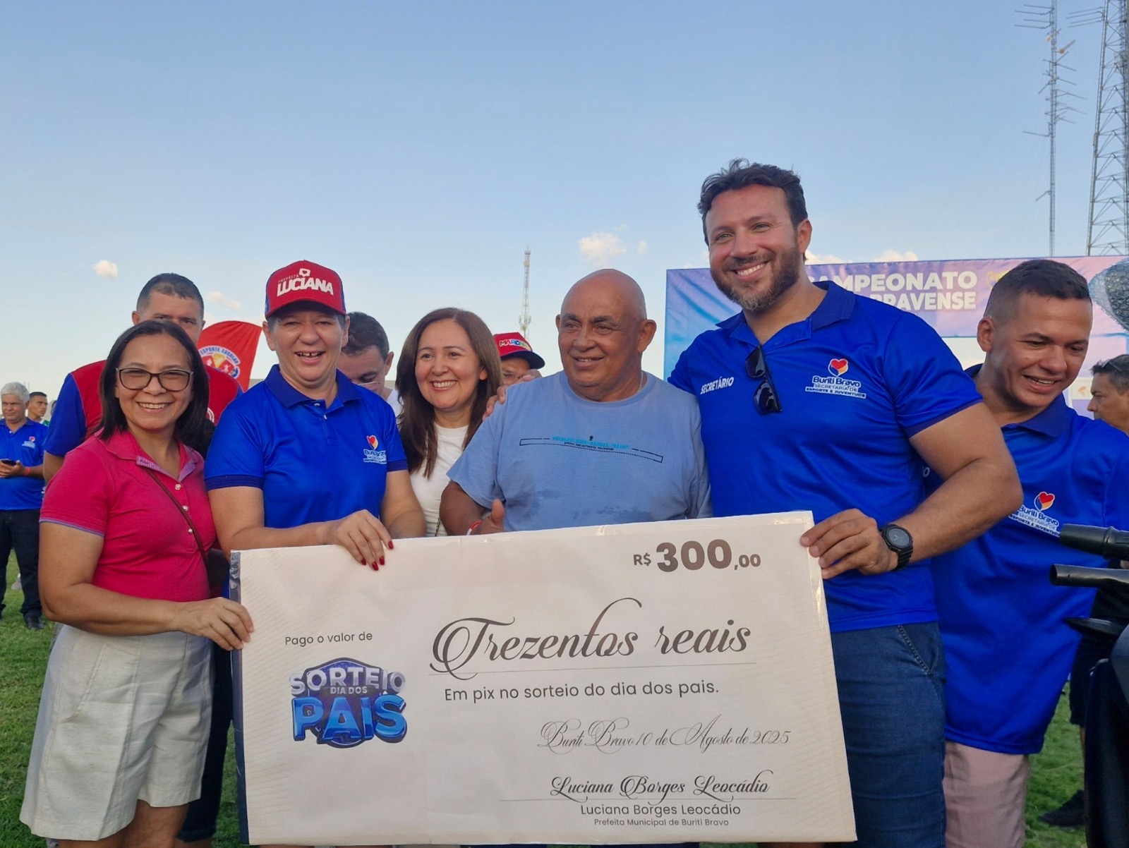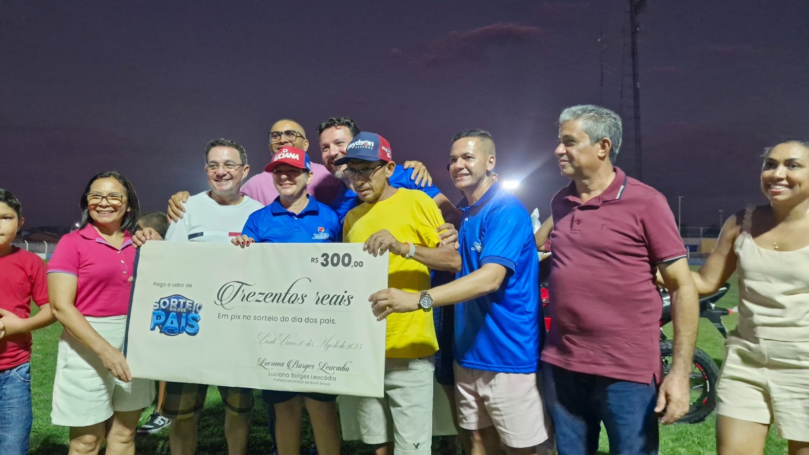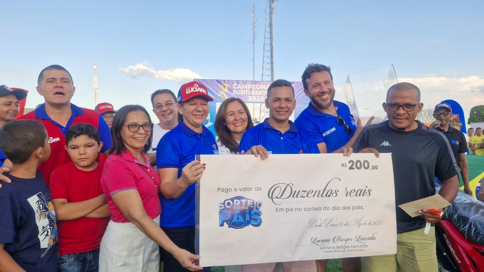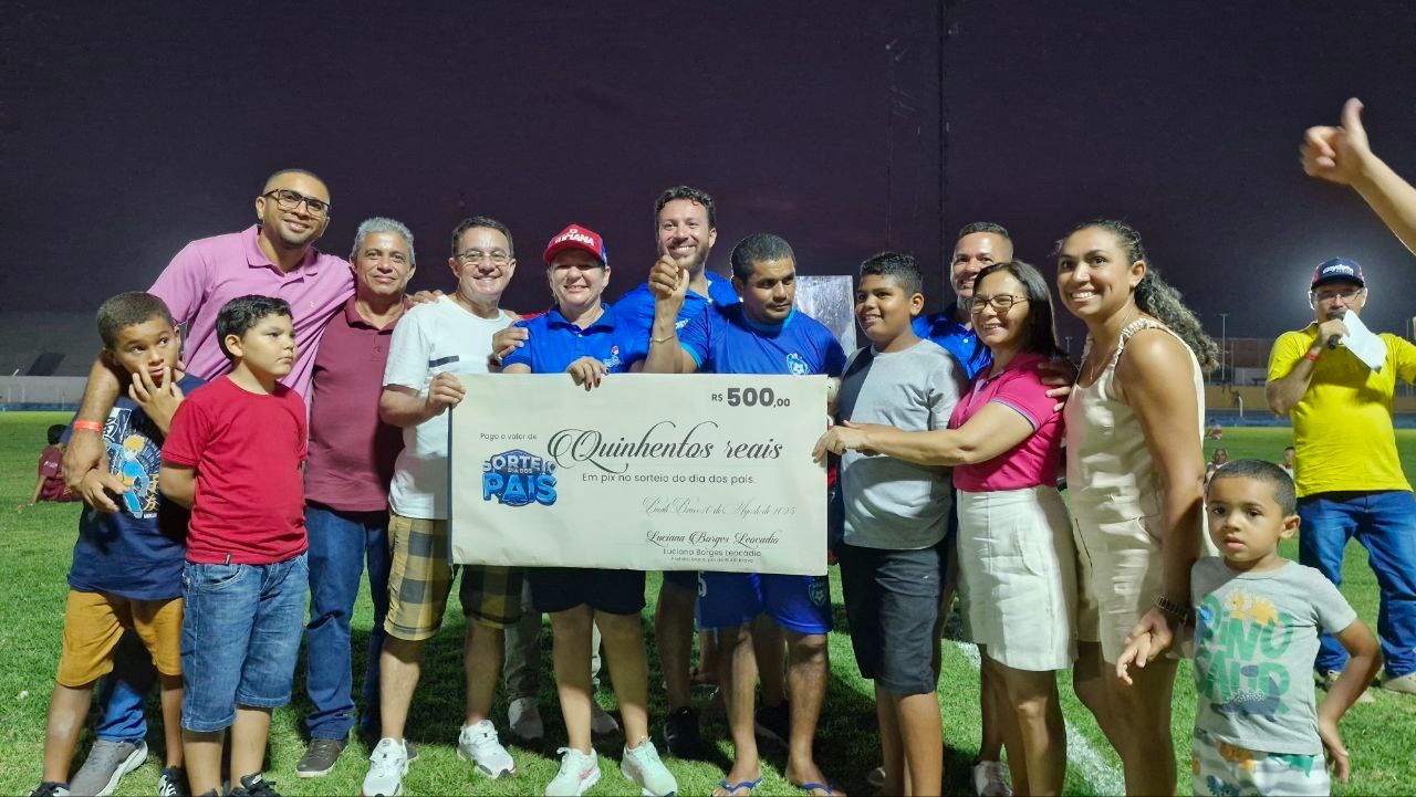 Na tarde deste domingo (10), Buriti Bravo viveu uma grande festa que uniu esporte, emoção e celebração. Em comemoração ao Dia dos Pais, a prefeita Luciana Leocádio participou da abertura do Campeonato Buriti-Bravense de Futebol e promoveu o sorteio de quase R$ 20 mil em prêmios, incluindo uma moto zero km. O grande vencedor do prêmio principal foi o Sr. Carlos do Olavo, que deixou o estádio “Lanchão” acelerando rumo a casa nova conquista.