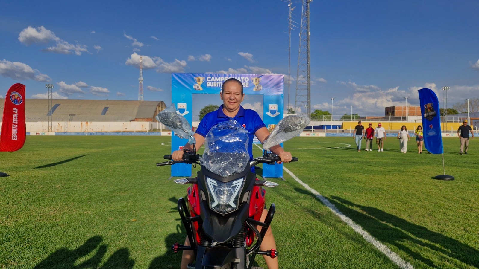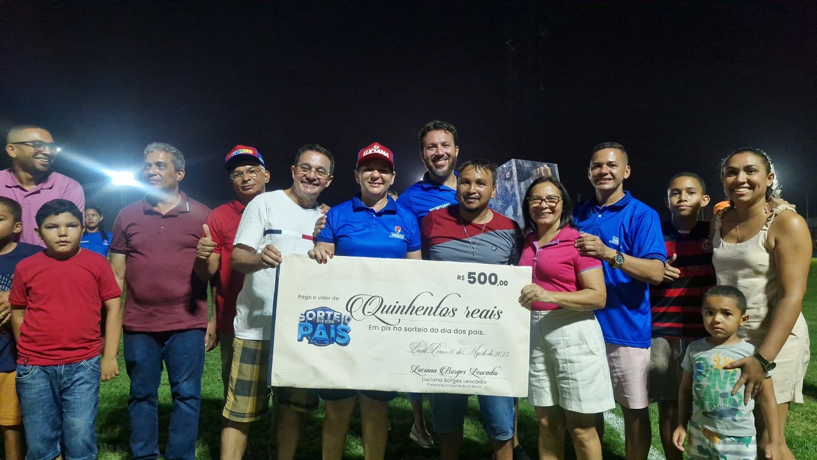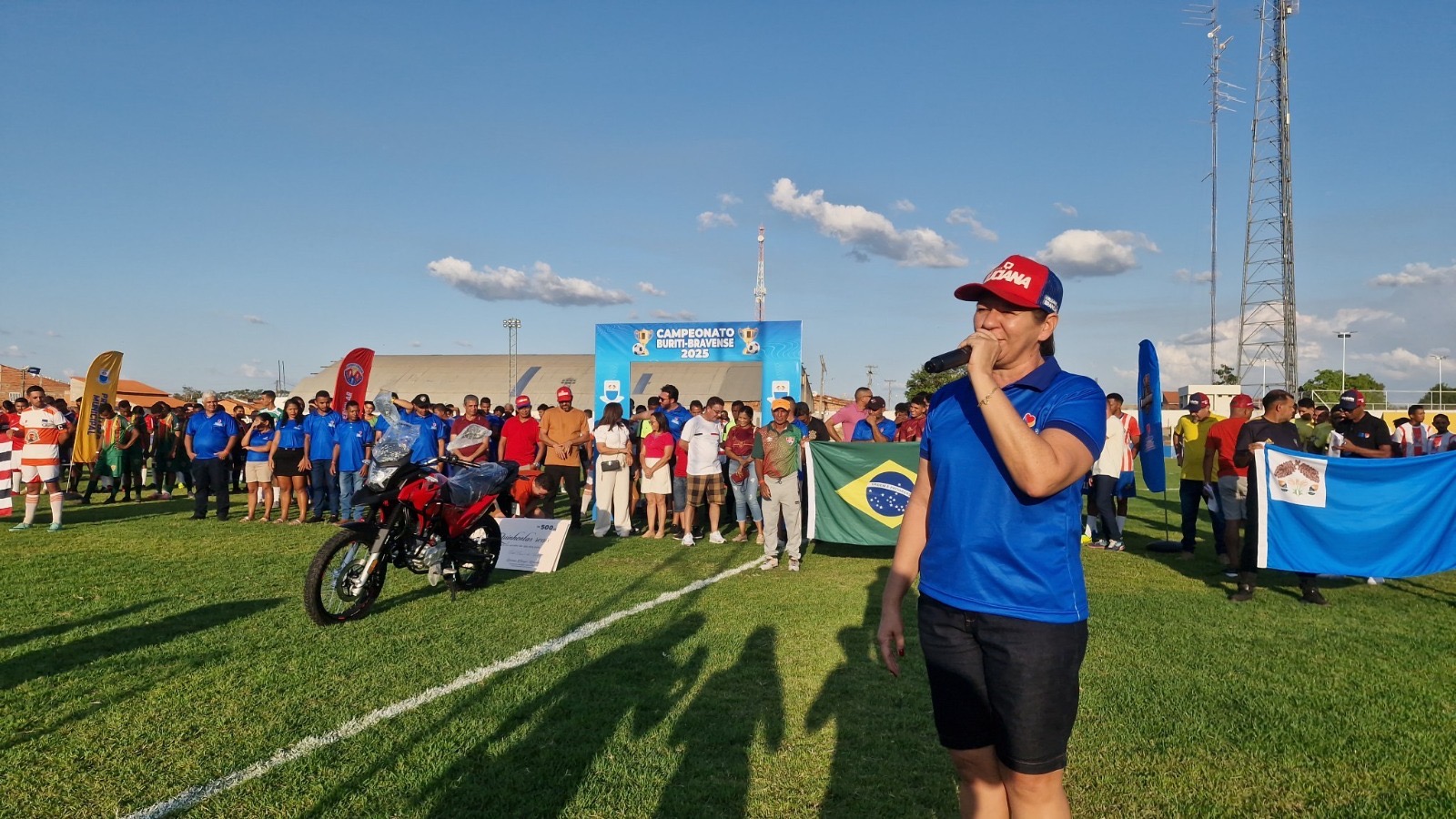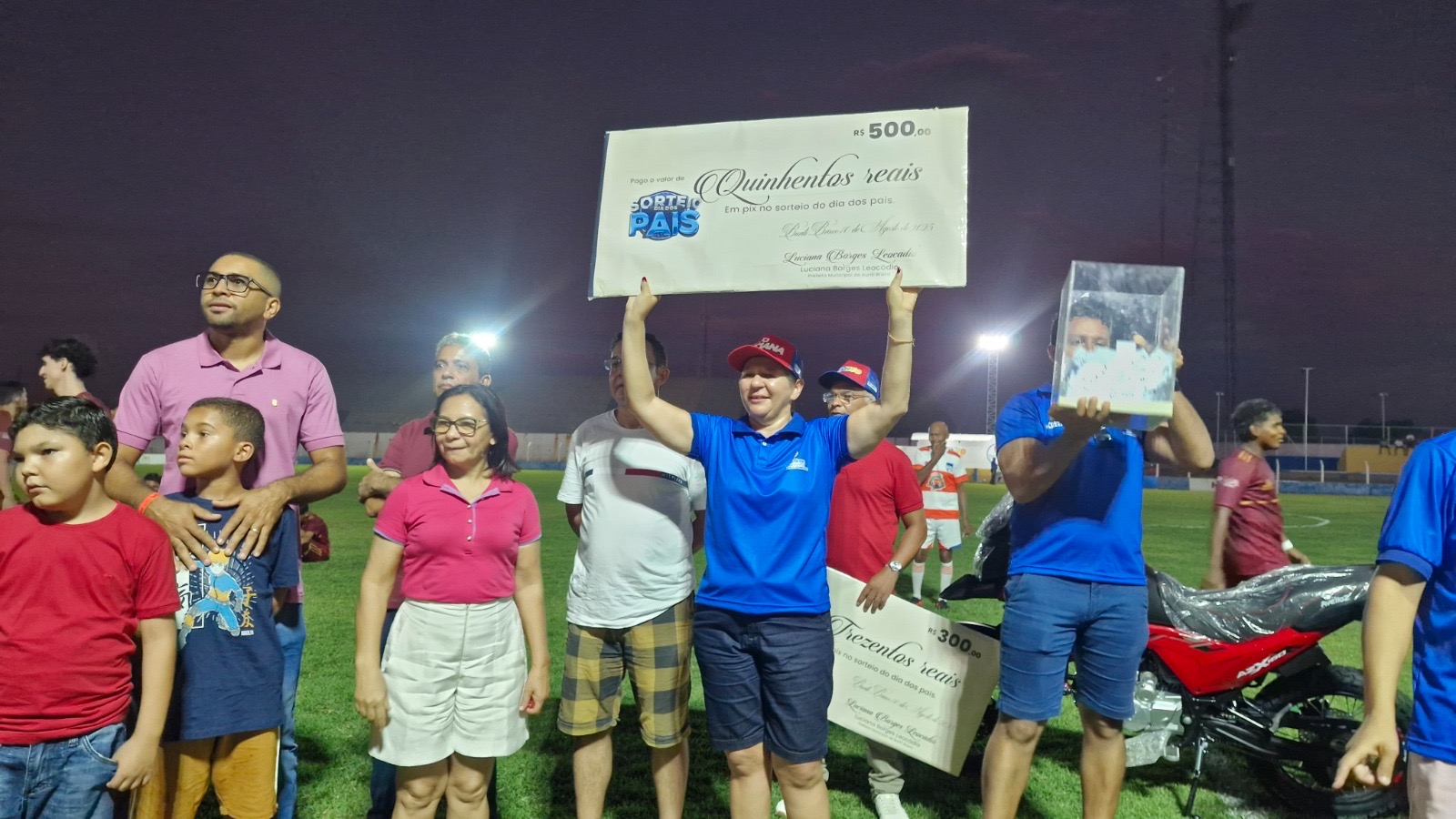 Na tarde deste domingo (10), Buriti Bravo viveu uma grande festa que uniu esporte, emoção e celebração. Em comemoração ao Dia dos Pais, a prefeita Luciana Leocádio participou da abertura do Campeonato Buriti-Bravense de Futebol e promoveu o sorteio de quase R$ 20 mil em prêmios, incluindo uma moto zero km. O grande vencedor do prêmio principal foi o Sr. Carlos do Olavo, que deixou o estádio “Lanchão” acelerando rumo a casa nova conquista.